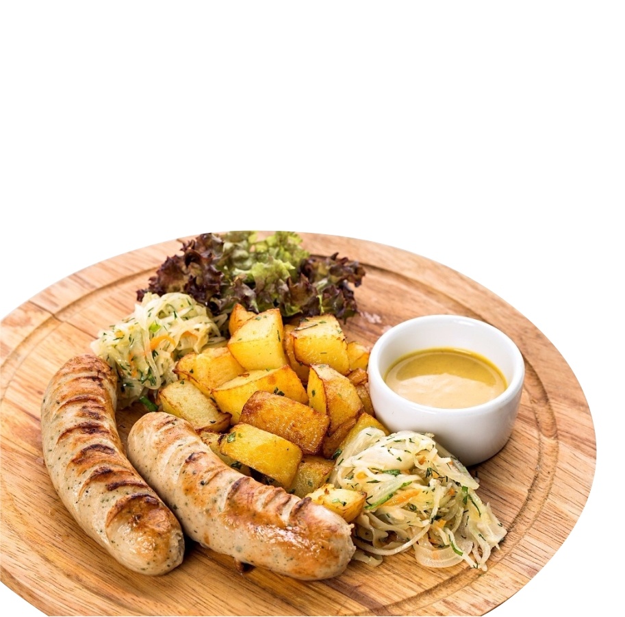 Баварские колбаски с картофелем в горчичном соусе 250гр.